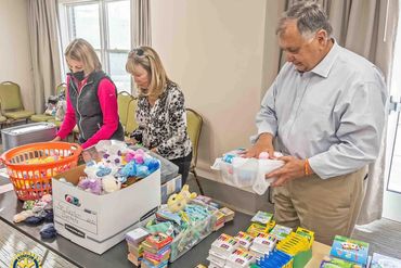 As part of the grant, we provided 400 boxes to other organizations for them to fill with items and cards. Now as Rotarians we are taking over and putting together 110 boxes – providing the boxes, and items to fill them. Each box contains small gifts, toys, games, crayons, coloring books and fun activities selected for a specific age and gender. These boxes are given out by hospital staff when a children comes in. Children and their parents are so thankful for these boxes that showcase the importance of play and are filled with well wishes, hope and love.